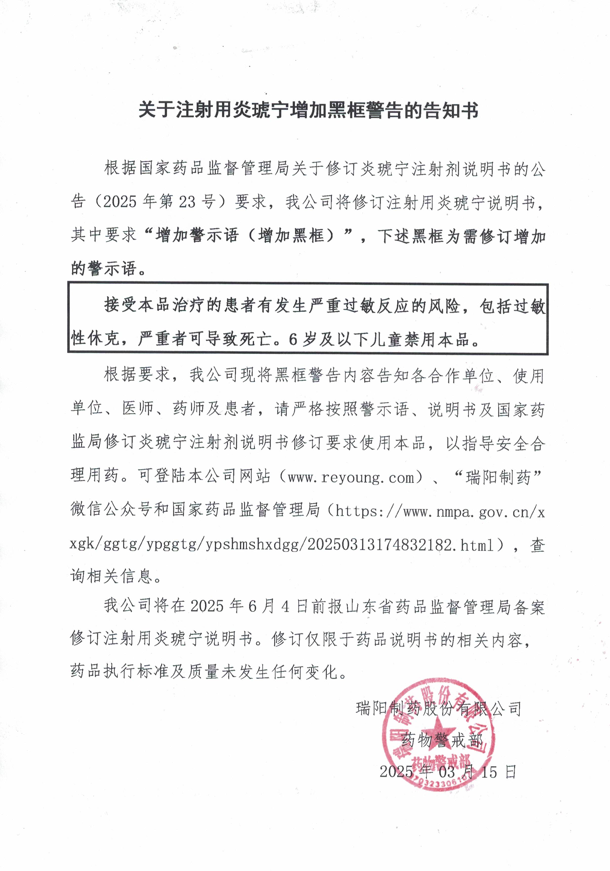關(guān)于注射用炎琥寧增加黑框警告的告知書.jpg