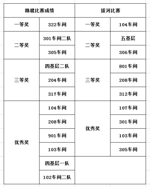踢毽比賽為限時賽,采取2分鐘計(jì)時,每隊(duì)5人,同時在各自1.5米的范圍內(nèi)踢毽, 5人的總體成績?yōu)閳F(tuán)隊(duì)比賽成績。比賽中,毽子在參賽者腳上翻飛起落,單腳踢,左右腳對踢,內(nèi)踢外翻,花樣不斷,不時贏得現(xiàn)場陣陣喝彩,整場比賽場面緊張激烈。經(jīng)過比拼,最終322車間代表隊(duì)獲得踢毽比賽一等獎。