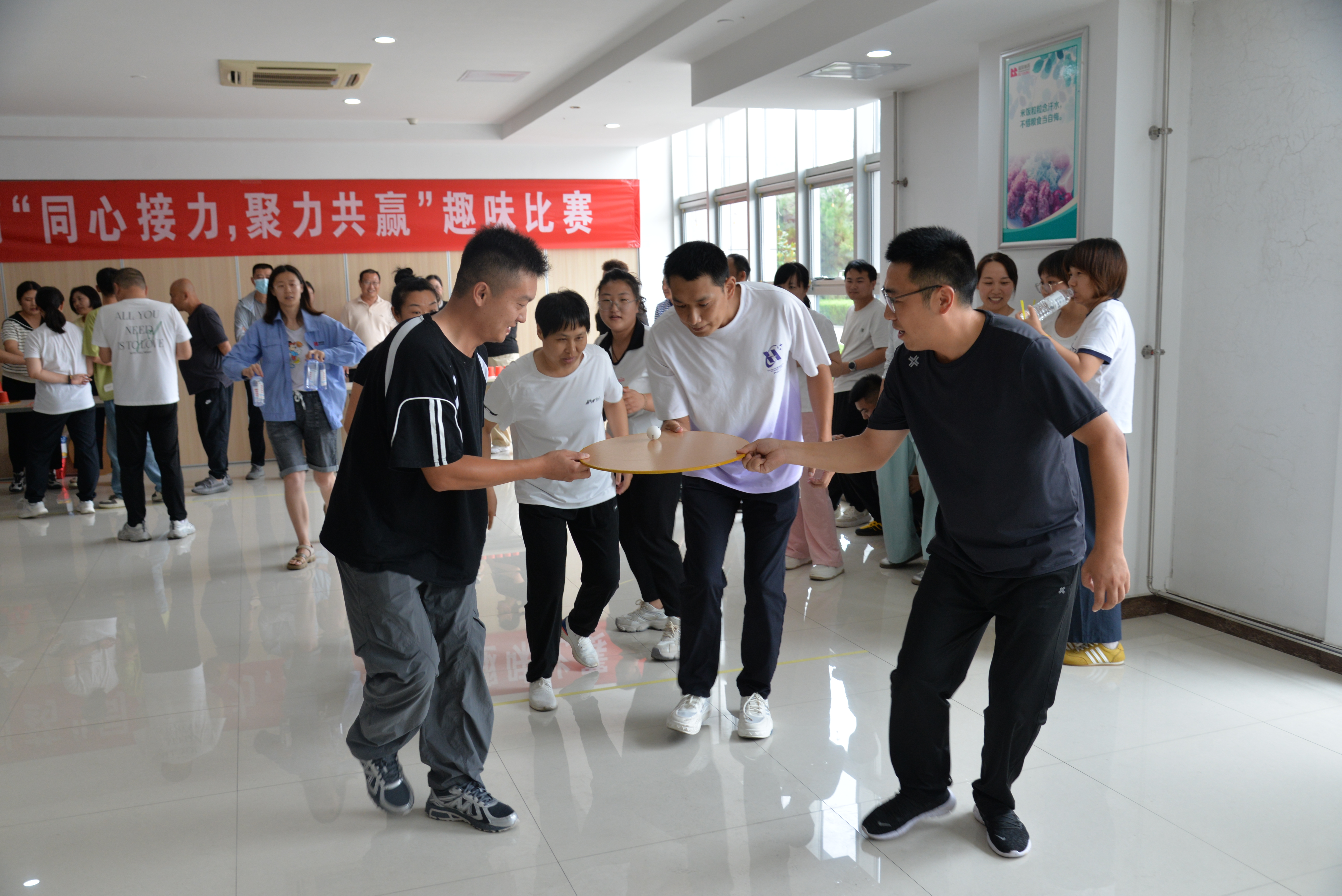 ? ?7月30日下午,食堂一樓南小廳熱鬧非凡,公司“同心接力,聚力共贏”趣味比賽火熱開鑼,來自各基層工會的18支參賽隊伍齊聚一堂,用默契和汗水,共同演繹了一場精彩紛呈、笑語飛揚的團隊協奏曲!