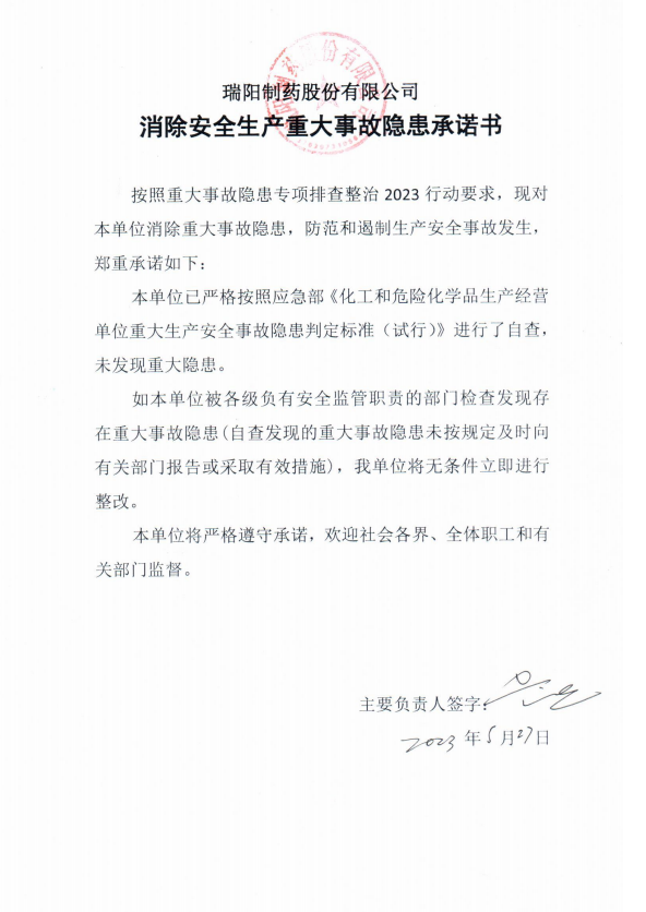 消除安全生產(chǎn)重大事故隱患承諾書